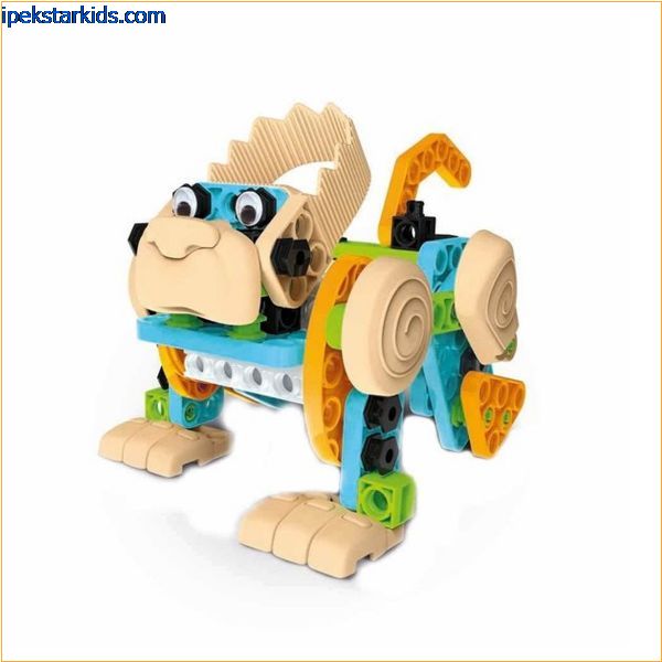 • İcat et, birleştir, oyna! İşte hareket eden ve yürüyen harika hayvanlar yapmak için kolaylıkla birleştirilebilen bol miktarda parçası olan, küçük çocuklara yönelik yeni mekanik laboratuvarı.
